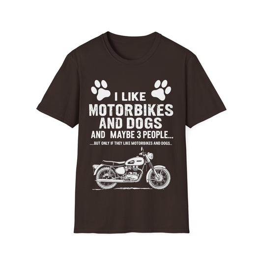 Motorbikes & Dogs T-Shirt — “I Like Motorbikes and Dogs (And Maybe 3 People)” Motorcycle Lover Tee