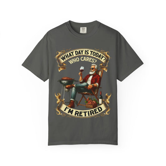 Retired Relaxing Grandpa T-Shirt — "What Day Is Today? Who Cares? I'm Retired"